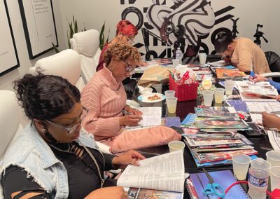 I don’t use bulky foam boards or flimsy poster boards. I provide each participant with a beautifully designed, Vision-It Portable Vision Book & Planner®. Tons of magazines, tape, scissors, stickers and wasabi tape are also provided.